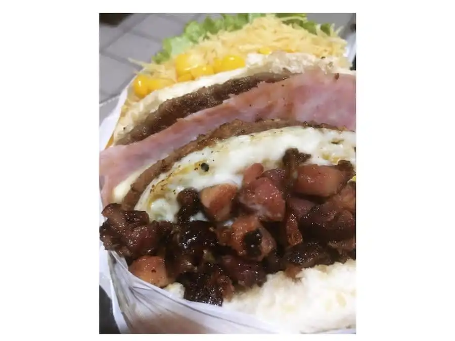 Pão,2hamb.90g,Ovo,Presunto,Mussarela,Bacon,Catupiry,Alface,Tomate,Milho,Batata Palha e Molhos Esp.